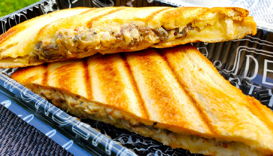 - Beef tongue sausage panini with demi-glace sauce made of Wagyu beef 700 yen